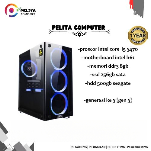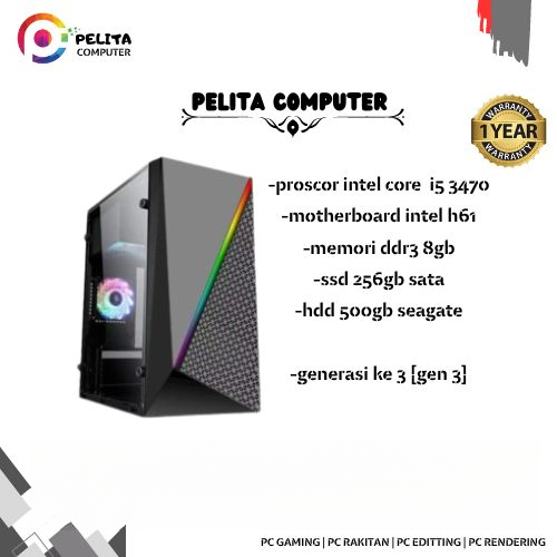 Rakitan Core i5 3470 16GB DDR3 SSD 256 GB MURAH MANTUL Garansi 1Tahun pc rakitan intel computer office sekolah