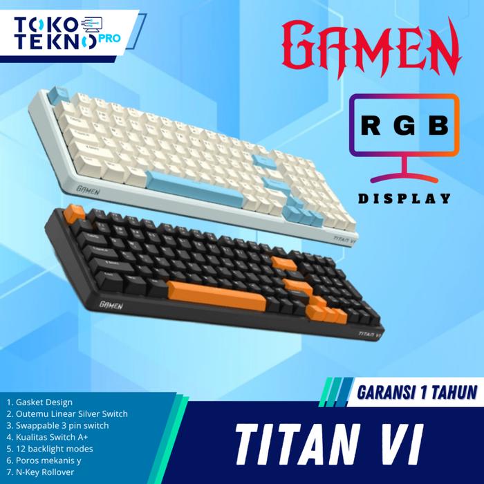 Gamen Titan VI / 6 Gasket Mount Mechanical Keyboard Wired HotSwappable - Hitam Outemu Silver Switch