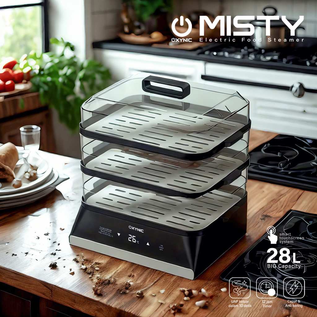 OXYNIC food steamer elektrik 3 tingkat touchscreen alat kukus makanan serbaa anti lengket MISTY