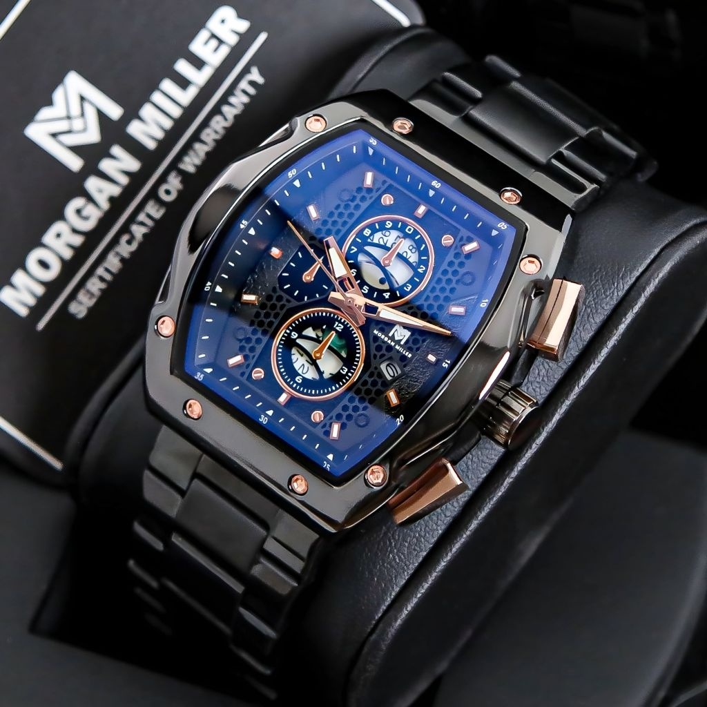 Morgan Miller MM88 Jam Tangan Pria Original Rantai Stanliess Kaca Blue Safir QuartzTanggal Aktif