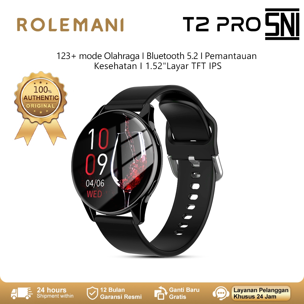 Rolemani T2 Pro Smartwatch Asli Panggilan Bluetooth Pemantauan Tekanan Darah Kesehatan