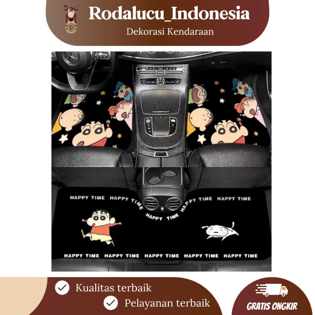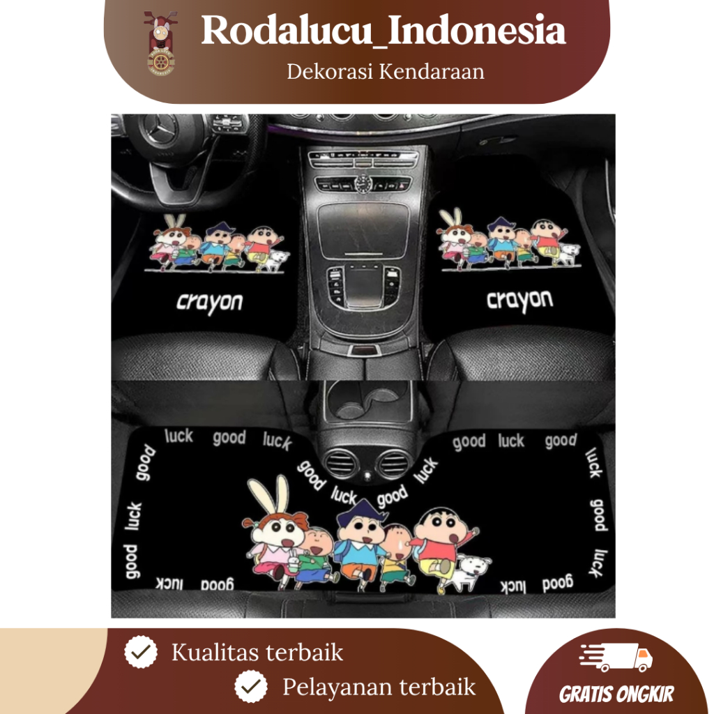 [RODALUCU] (1 Set 3 Pcs) Karpet Mobil Crayon Shinchan Hitam – Carpet Car Anti Slip Dekorasi Interior Lucu