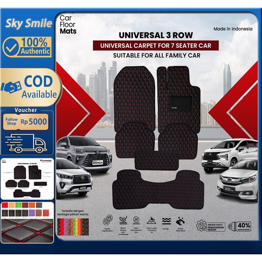 Sky Smile Karpet Mobil Premium 3 Baris Universal Kulit Waterproof Aksesoris Mobil Karpet Lantai