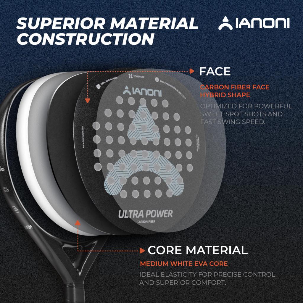 Raket Padel Ianoni Ultra Power Full Carbon Teardrop Sandy Surface Original Padel Racket Intermediate