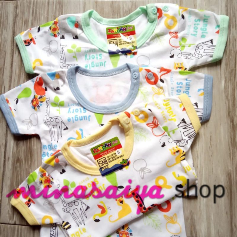 kaos bayi ZAHDAN 3 pcs Kaos Bayi SNI Lengan Pendek Motif Kancing Pundak Uk. S - XL