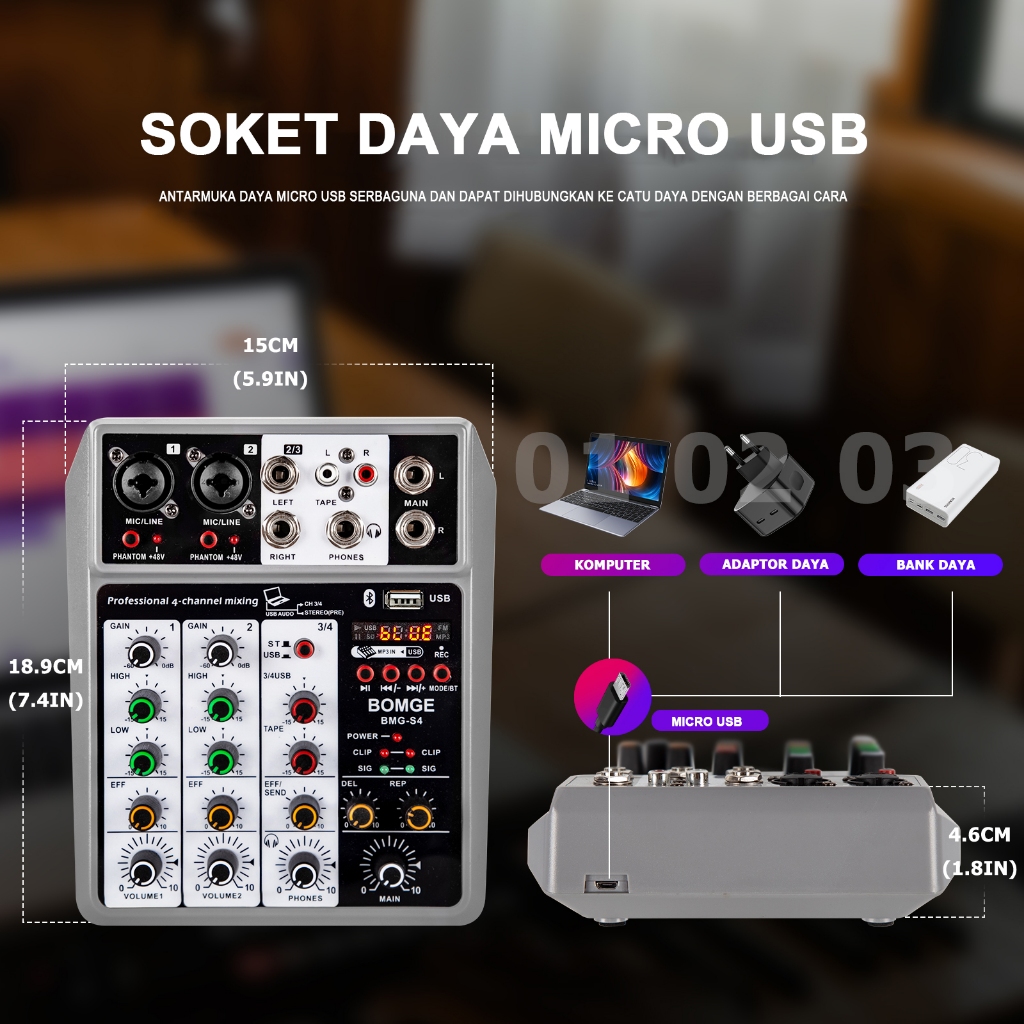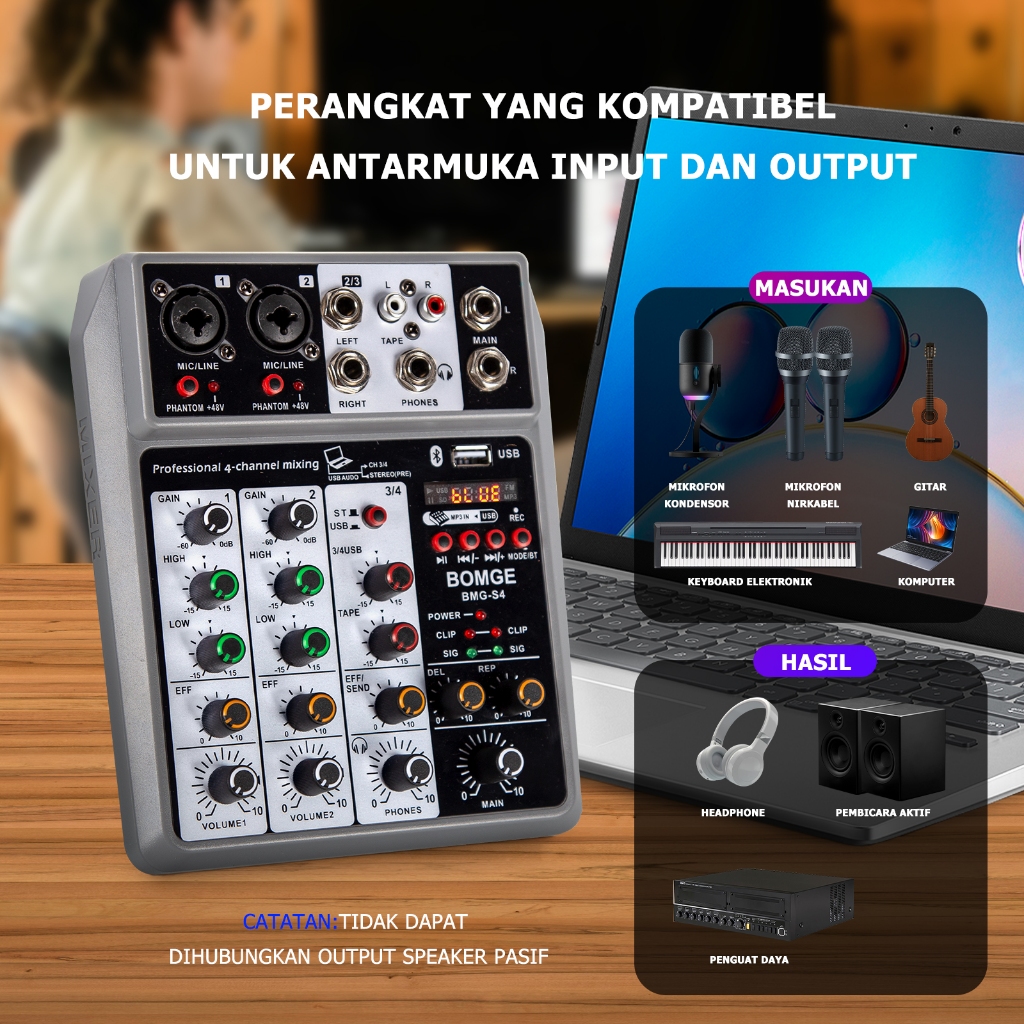 BOMGE S4 Professional Audio Mixer Soundcard, Sound Board Mixing