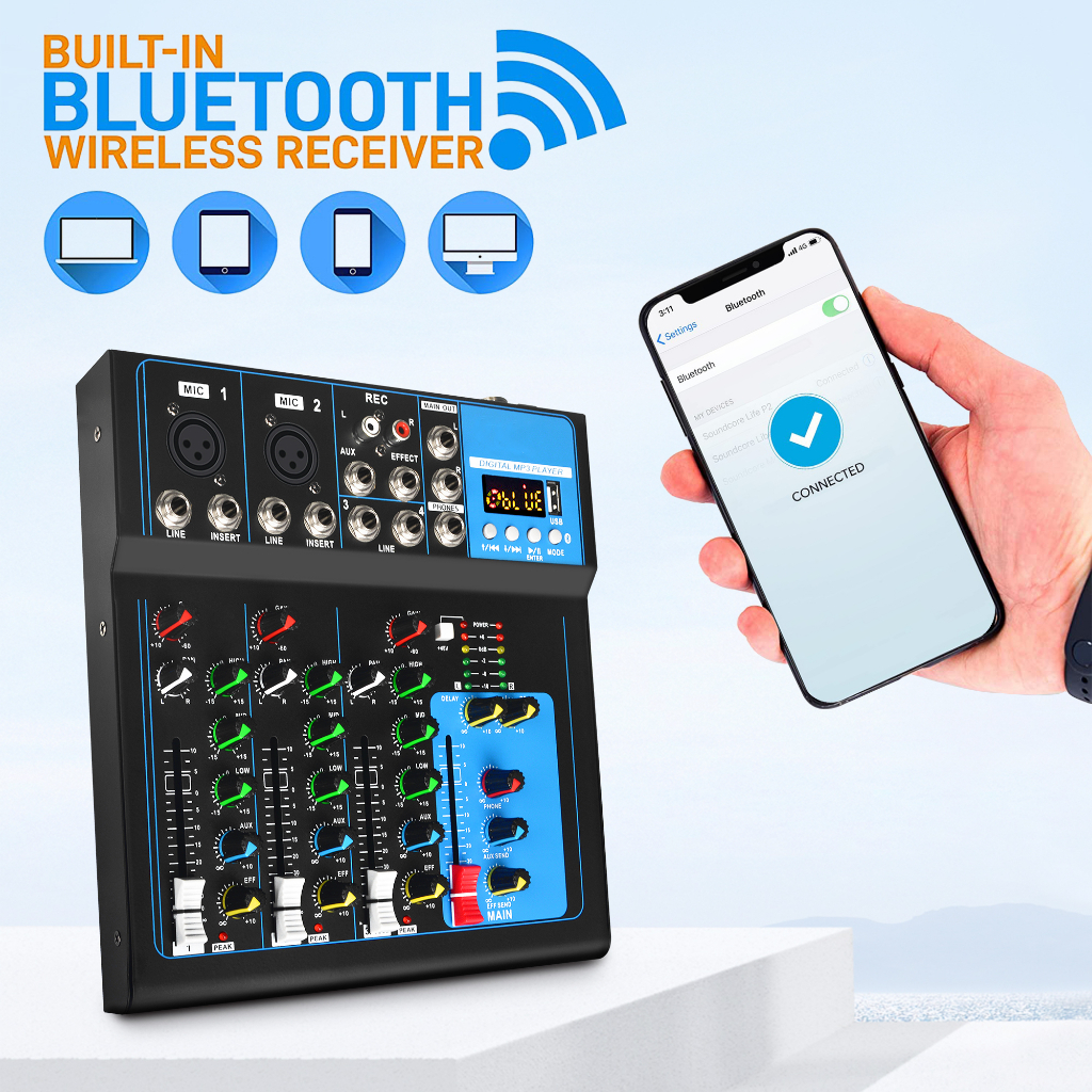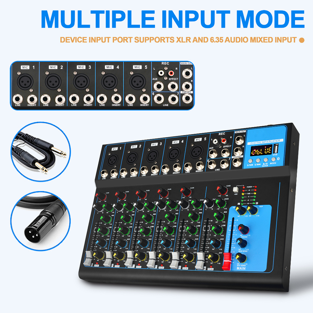BOMGE F7 Audio Mixer 17V AC USB DJ Sound Mixing Console MP3 Jack 48V Power SoundCard Mixing Console MP3 Jack 48V Power f