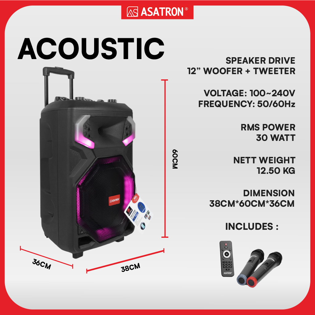 Speaker Bluetooth Party Asatron Acoustic 12 Inch Gratis Ongkir