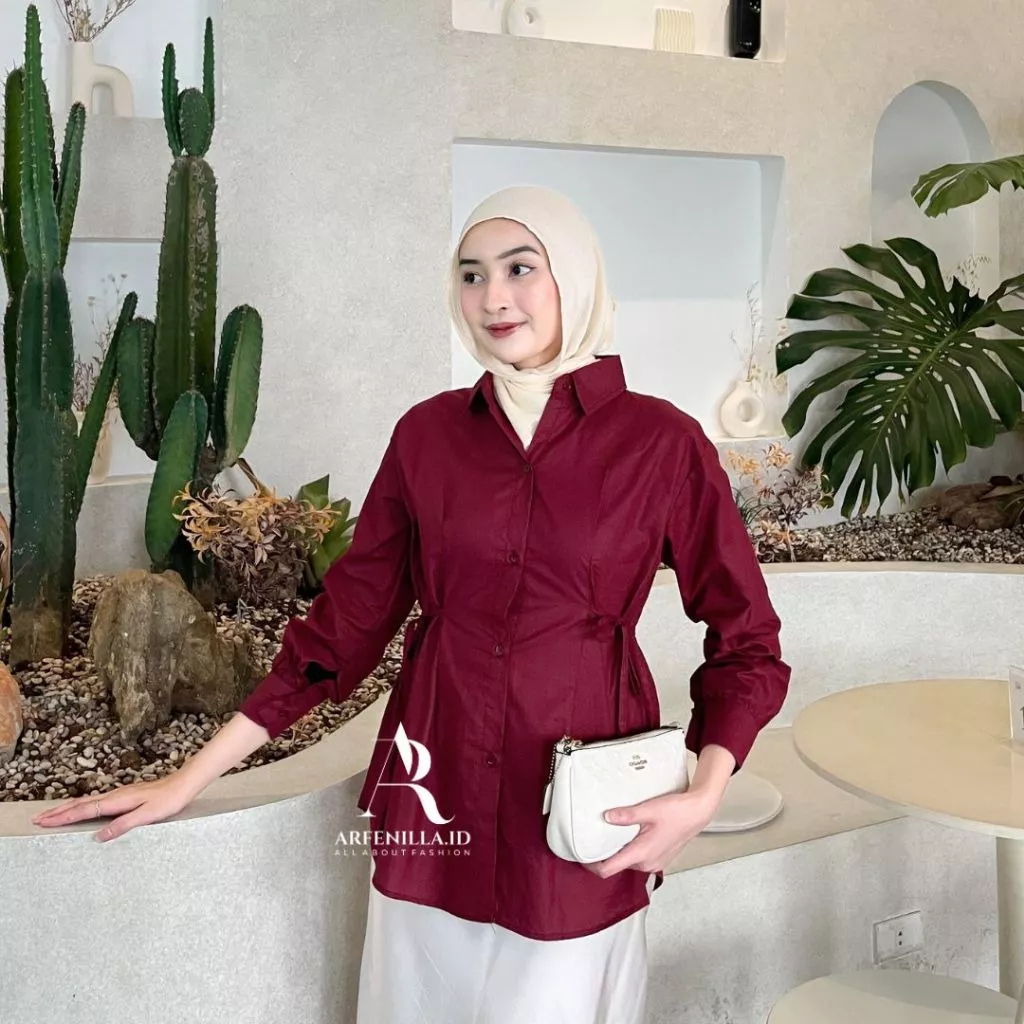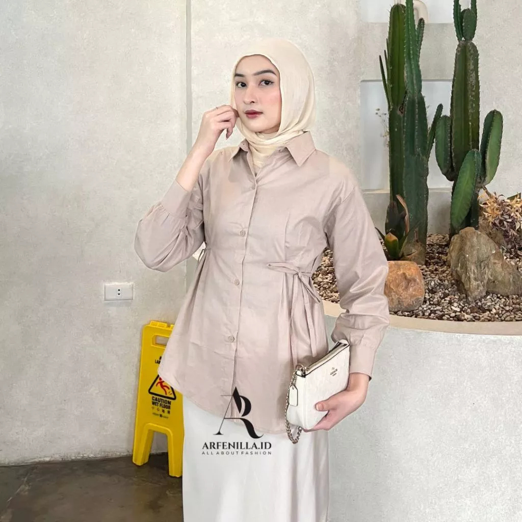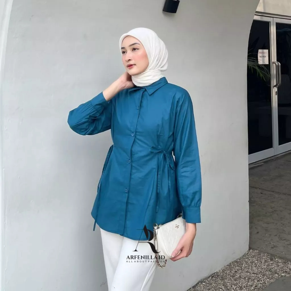 Atasan Wanita Kekinian Flaura Top Sleve Tali Samping Katun Poplin Series Premiuem Kemeja Wanita Lengan Panjang Murah