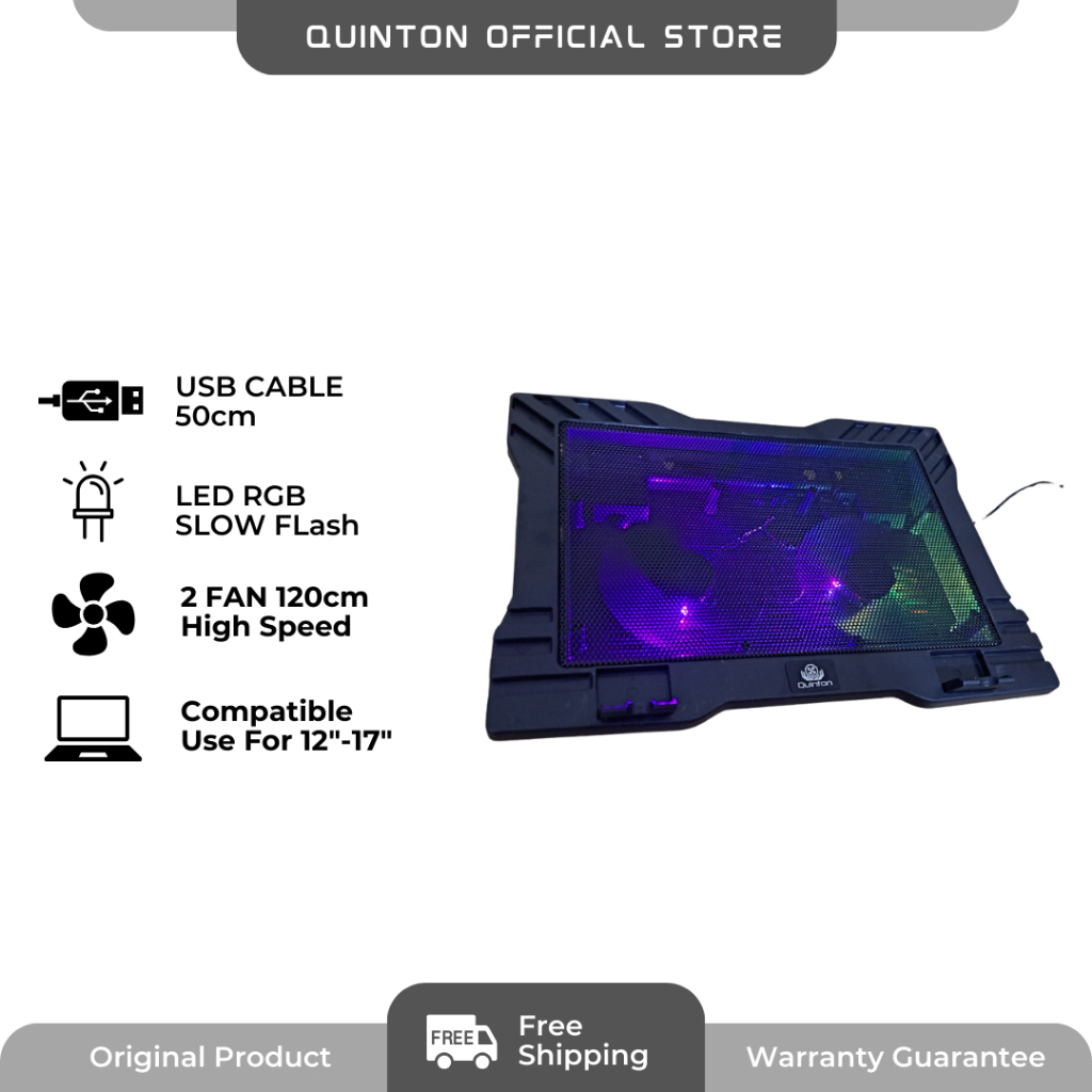 QUINTON Kipas Laptop Cooling Pad laptop Sirocco 12-17inch 2 fan RGB