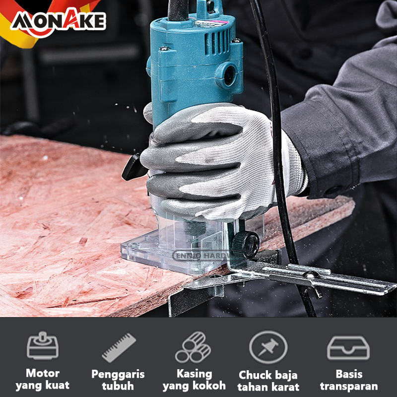 MONAKE German tool Wood Trimmer Kayu Set 6mm 1/4 Inchi Mesin Router Profil List Kayu Trimer Ruter MK3709