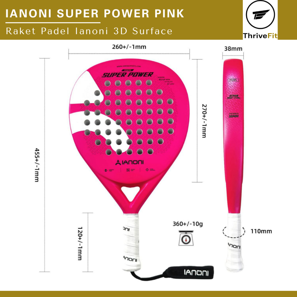 IANONI Super Power 3D Surface Padel Racket / Raket Padel 3D Surface