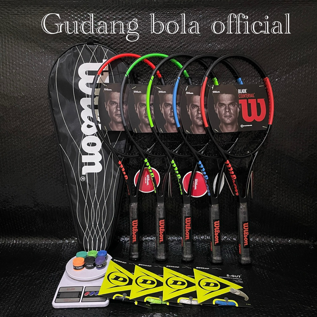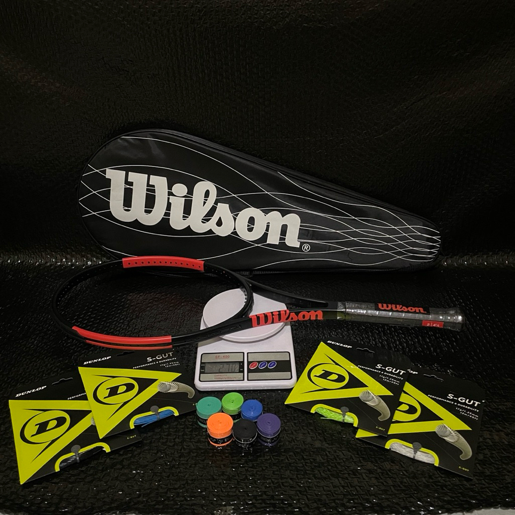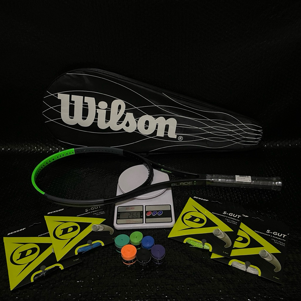Raket Tenis Lapangan Carbon Premium WILSON BLADE 98v6 + Senar DUNLOP S-gut Free tas