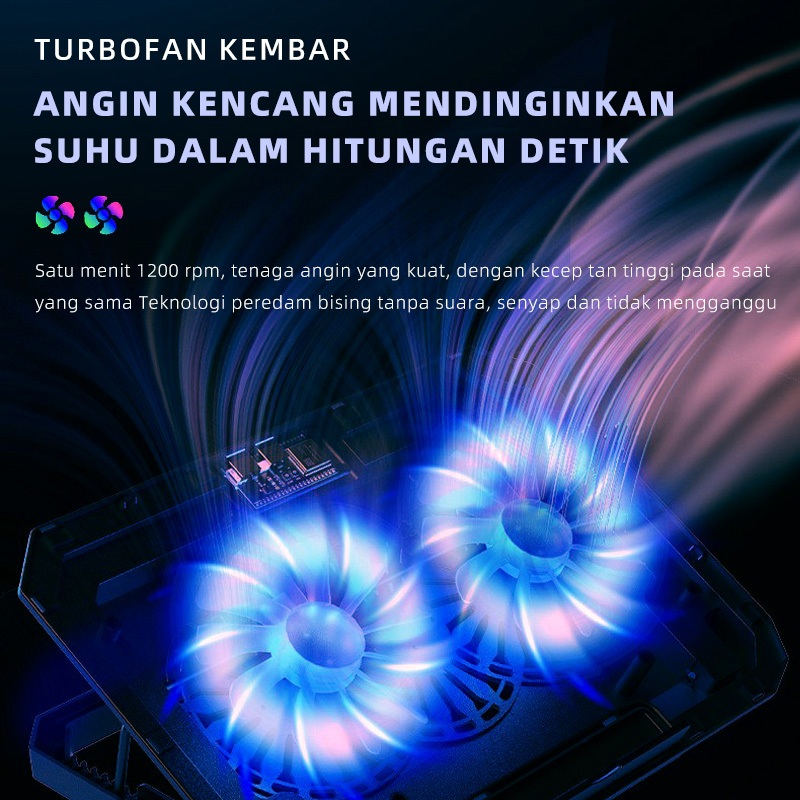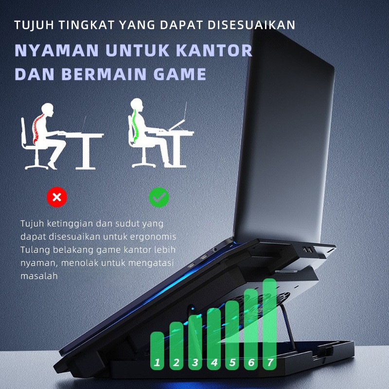 OLYPS Cooling Pad Laptop RGB Gaming Kipas Pendingin Laptop N33 With Phone Stand - 7 Level Adjustable