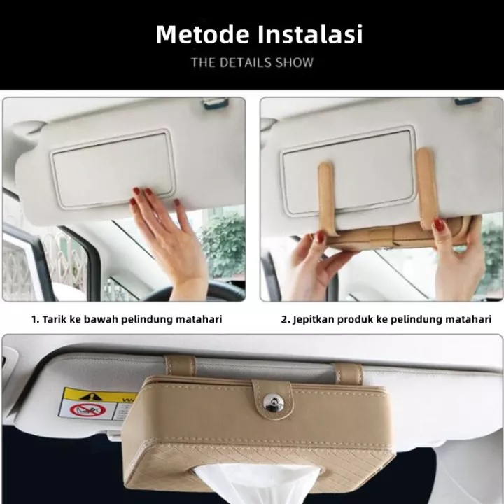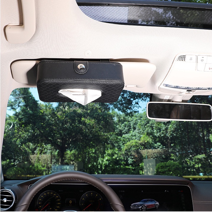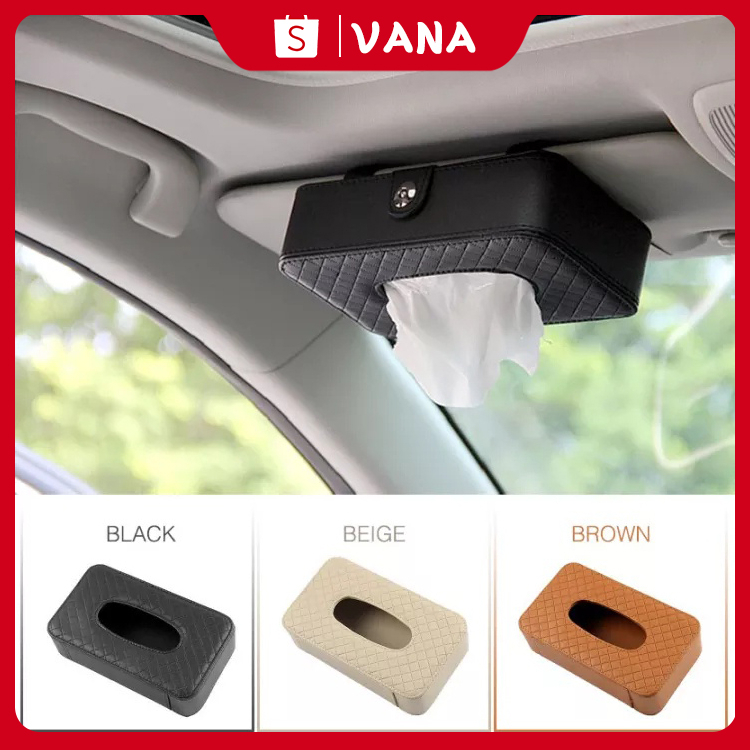 VANA【Large】Car Visor Tissue Box PU Leather Mesh Tissue Box Holder Masker Gantung Kotak Penyimpanan