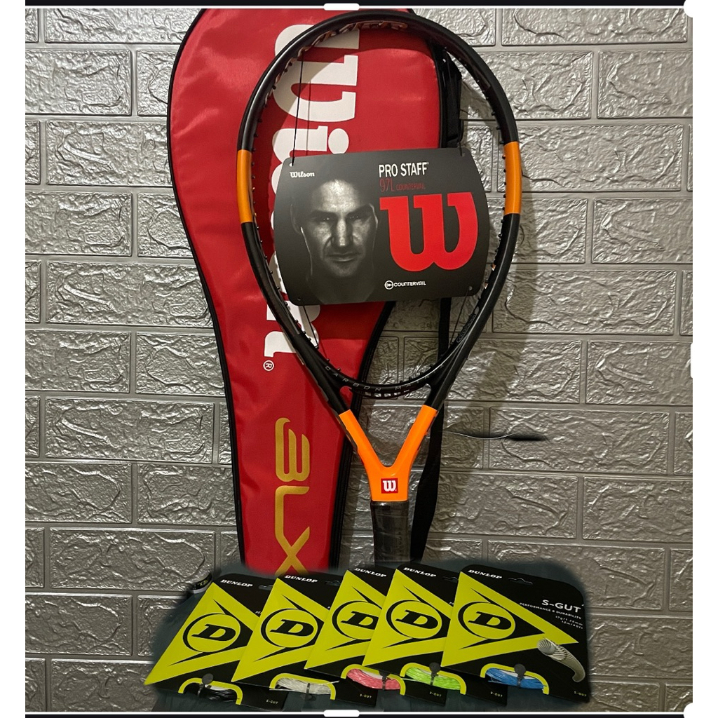 Raket Tenis Lapangan Carbon Matrix Premium WILSON HAMMER Orange + Senar DUNLOP S-gut Free tas