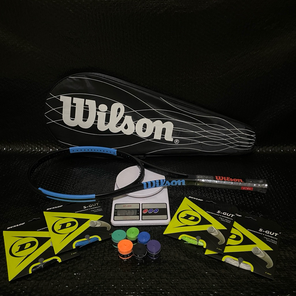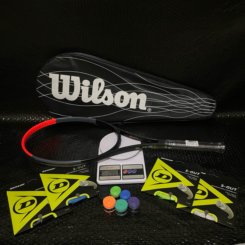 Raket Tenis Lapangan Carbon Premium WILSON BLADE 98v6 + Senar DUNLOP S-gut Free tas