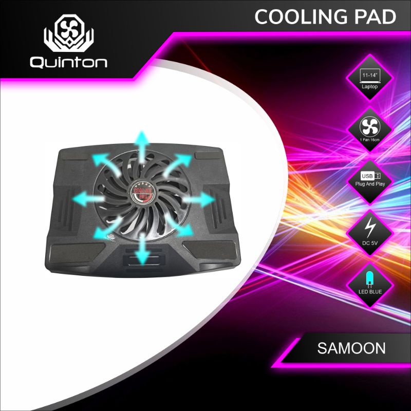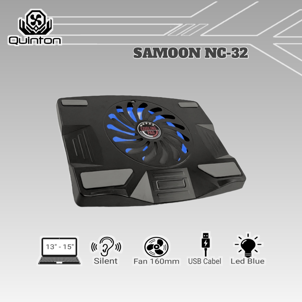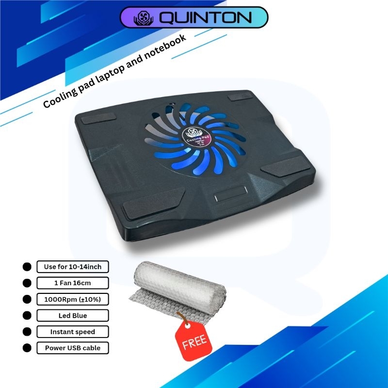 Quinton kipas laptop samoon cooling pad big fan 16cm led biru notebook dan laptop 14-15inch