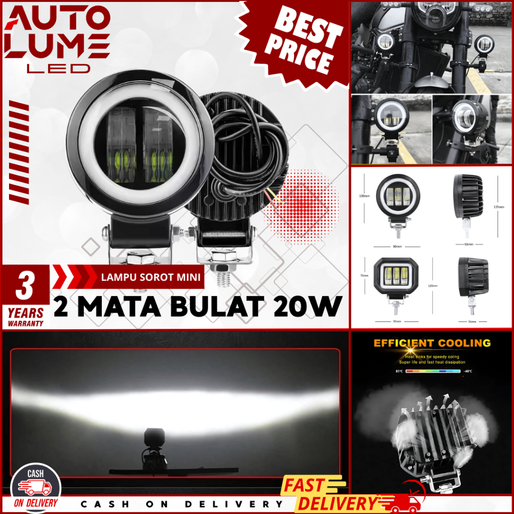 Lampu Tembak OWL 3INCH - LAMPU Sorot Mini LED 4D CWL 20W 2 Mata Bulat - Super Terang, Anti Air - Garansi 3 Tahun
