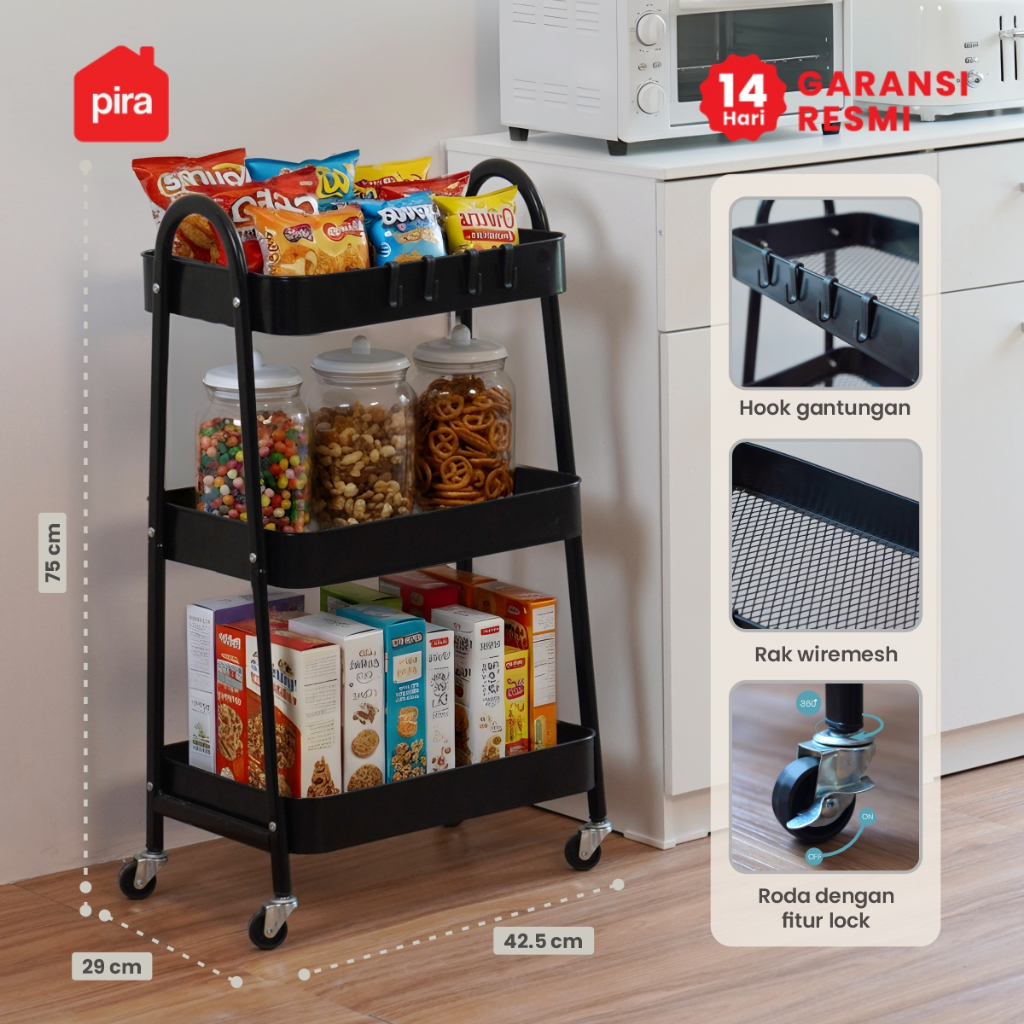 PIRA - MIKU MKT3 Rak Troli / Rak Penyimpanan / Rak Serbaguna / Rak Besi 3 Susun dengan Roda