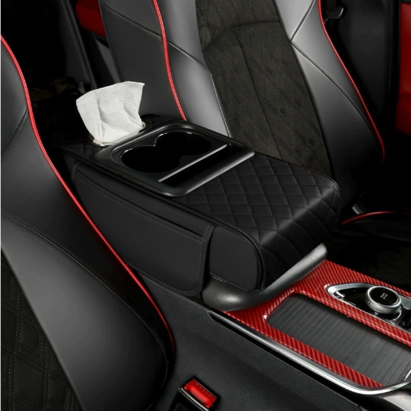Armrest Pad Mobil Kotak Tisu Mobil Tempat Botol 4 In 1 / Console Box Storage / Cover Tisu Premium
