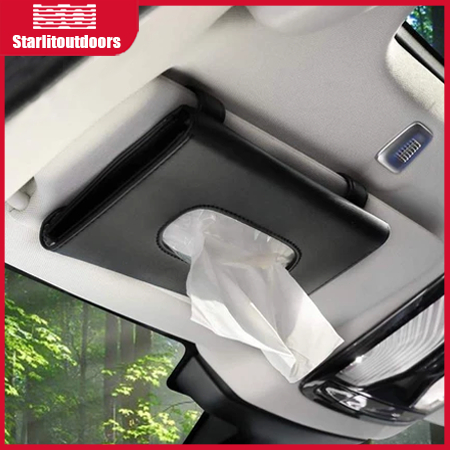 Tempat Tisu Mobil / Kotak Tissue Gantung Car Sun Visor Jepit PU Leather Wadah Tisu Mobil