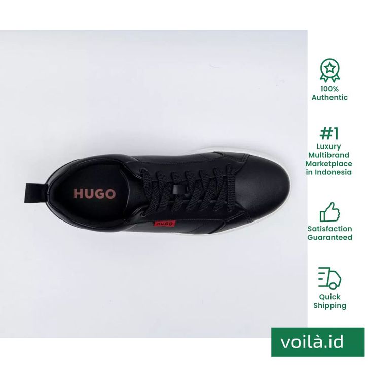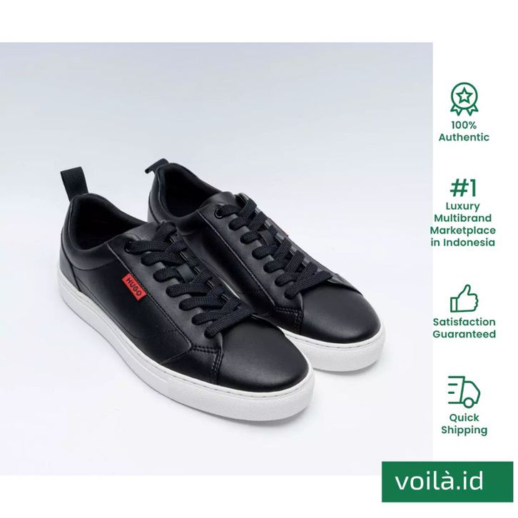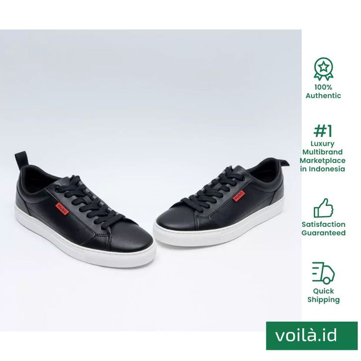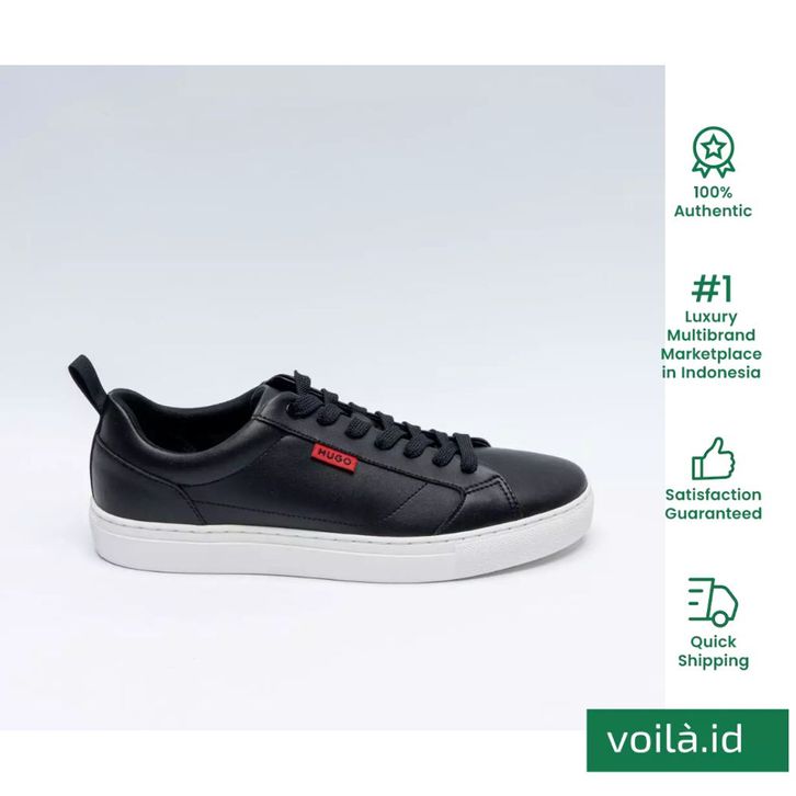 Hugo Boss Morrie Ten Faux Leather Trainers With Red Logo Flag Sneakers Black