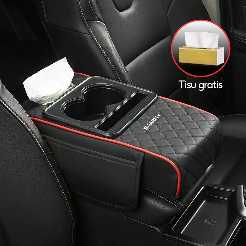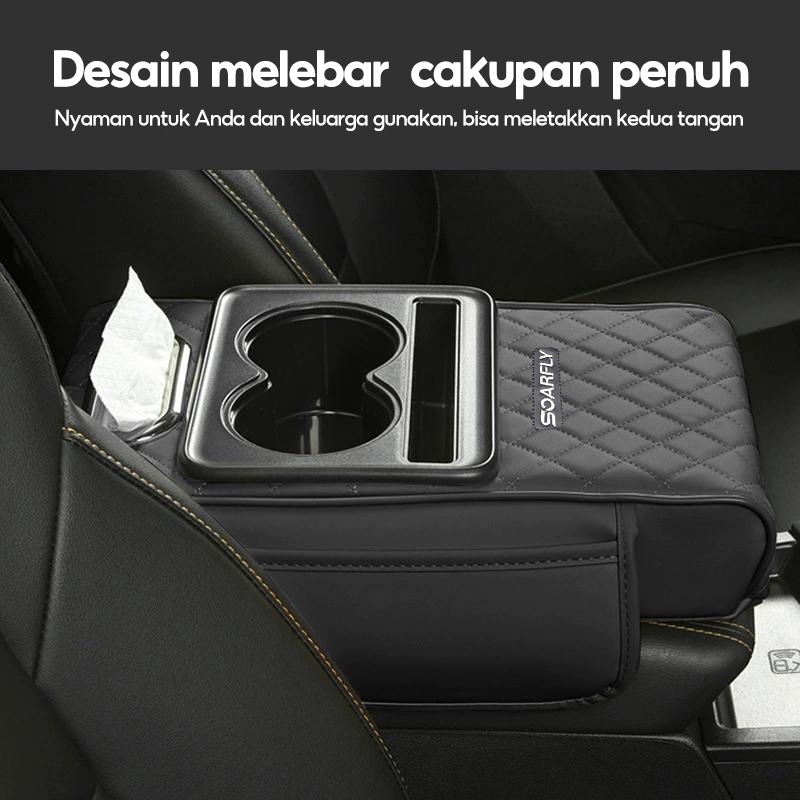 [] Armrest Pad Mobil Kotak Tisu Mobil Tempat Botol 4 In 1 / Console Box Storage / Cover Tisu Premium