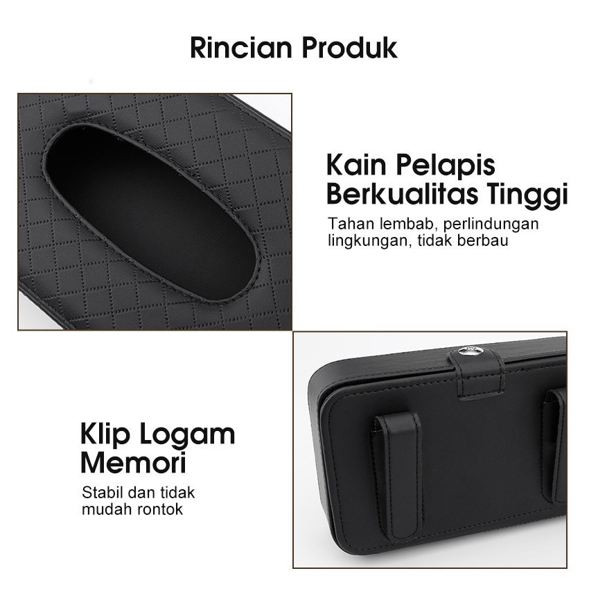 Kotak Tisu Mobil / Tempat Box Tissue Gantung Sunvisor Car Leather PU Kulit Motif Kotak Wajik Holder