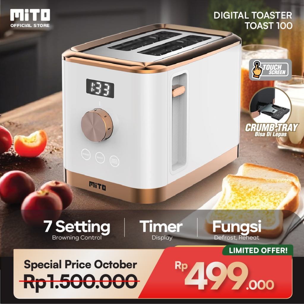MITO Toast100 - Digital Toaster (DIGITOAST)-Touchscreen-Timer Display-7 Setting Browning Control-Reheat & Defrost-Extra