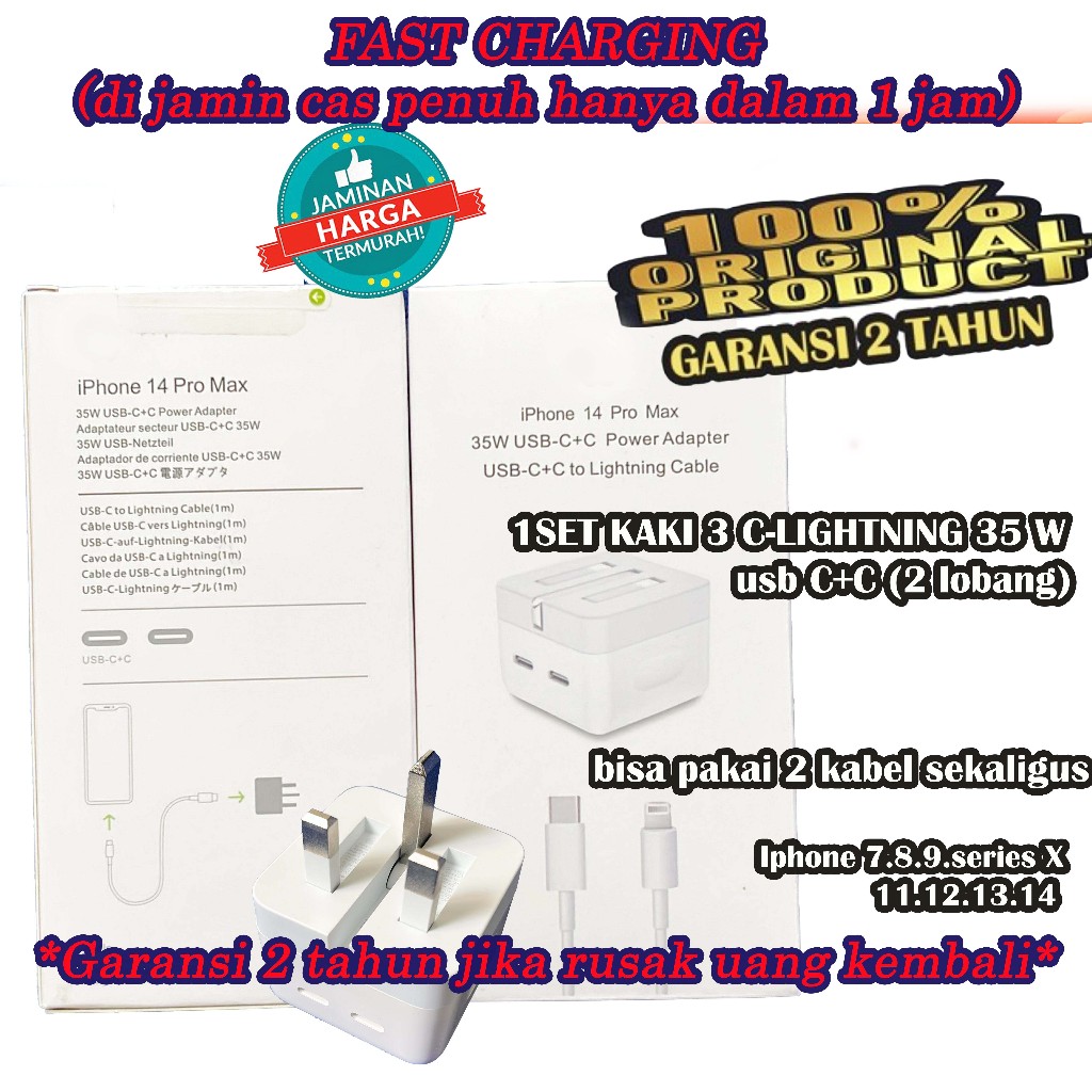 Charger Iphone 35W/IP 13/14/15 Pm/16 Pro Max FAST CHARGING/KABEL CAS/ADAPTOR/CASAN Ipon