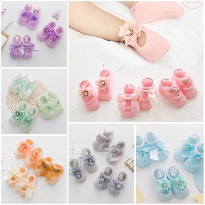 Kaos kaki baby perempuan 0-1 tahun 1 SET ISI 3 PASANG/ Kaos kaki cantik bayi Newborn - PINK