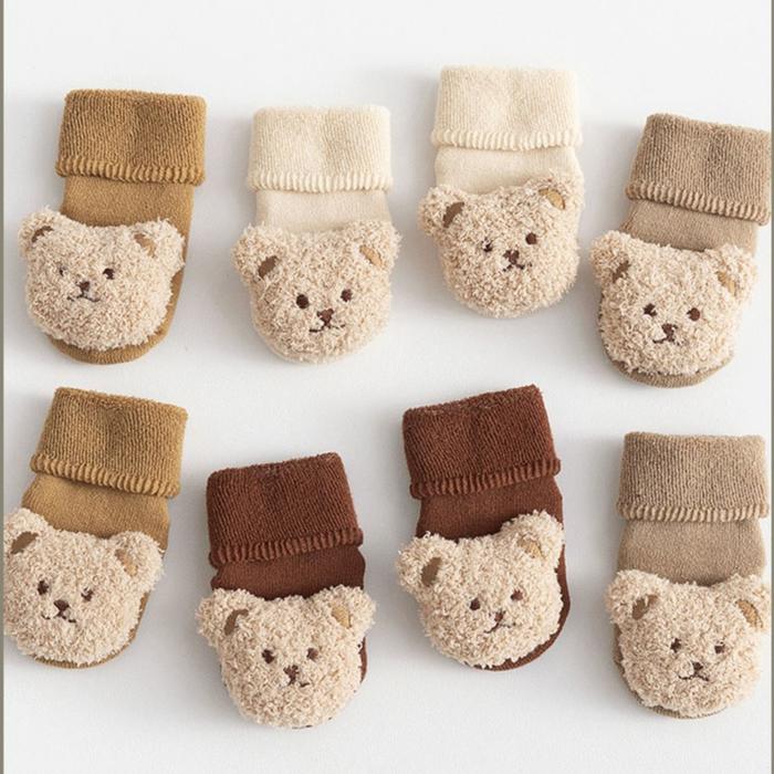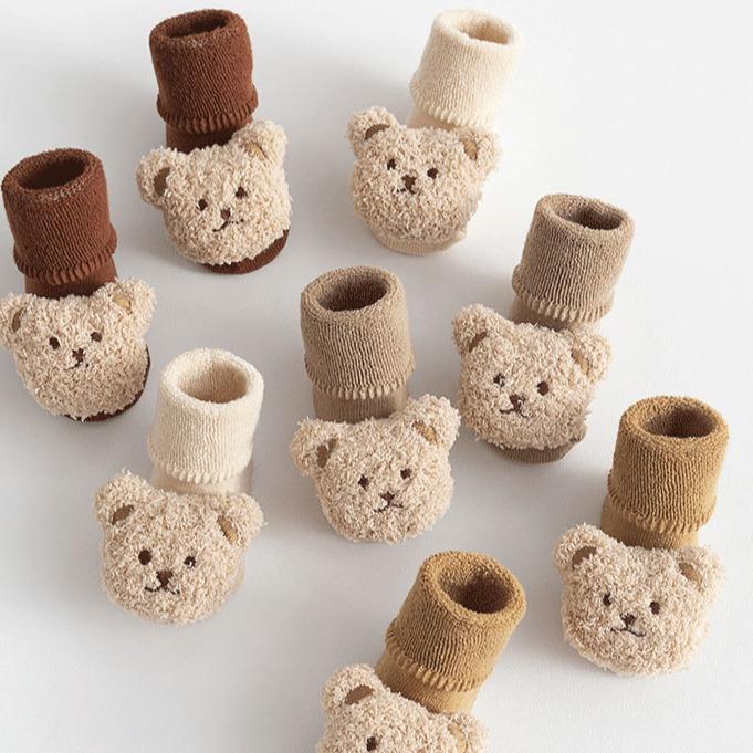 Kaos Kaki Bayi Anak Unisex Model Head Bear 3D Usia 0-12 Bulan / Kaos Kaki Pendek Premium - Beige