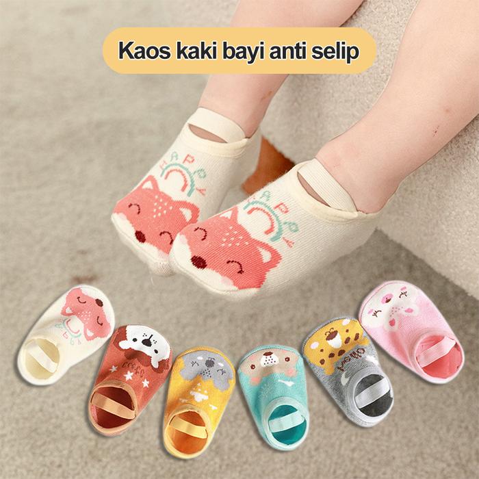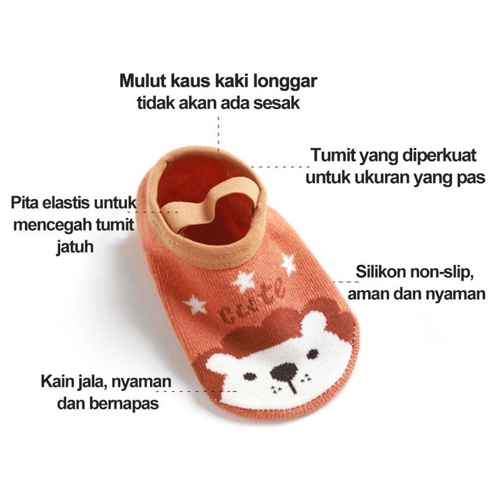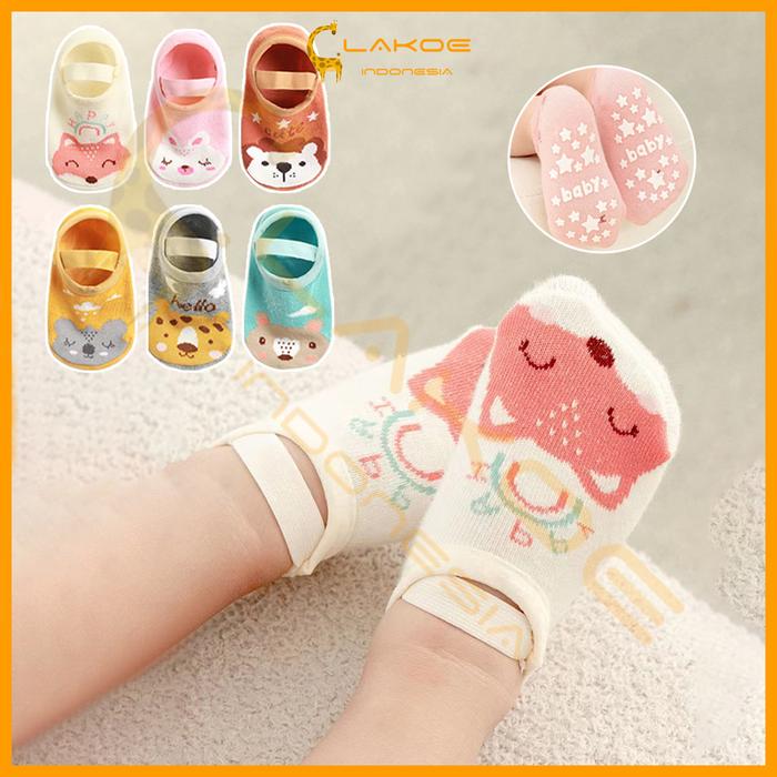LAKOE Kaos Kaki Bayi Anak Lucu Motif Hewan Kaos Kaki Sepatu Bayi Anti Slip - Red S