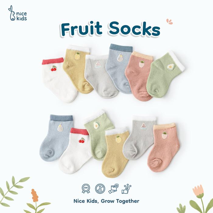 Nice Kids - Baby Fruit Socks (Kaos kaki Bayi Dua Warna 0-6 Bulan) - Cherry-White