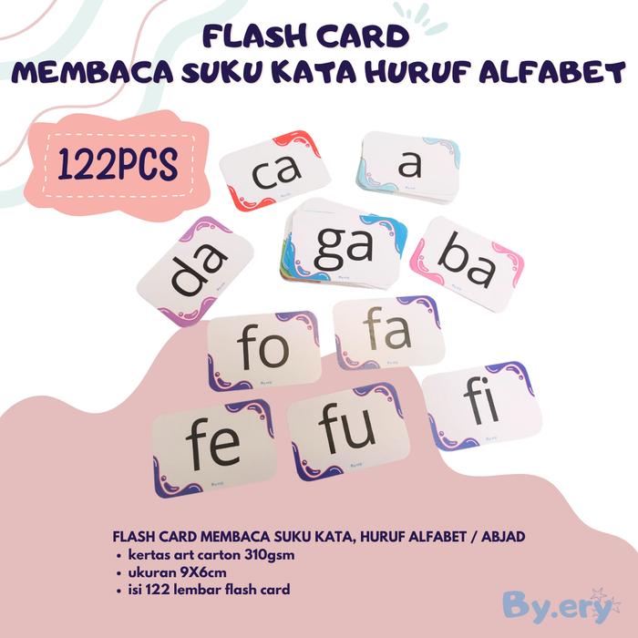 FLASHCARD BELAJAR MEMBACA SUKU KATA HURUF ALFABET ISI 122PCS KARTU Toys