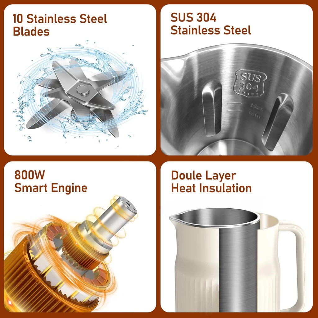 Ideame Blender Mesin Penghalus Biji Bijian Elektrik A001 / Milk Maker 800ML 10 Blades Stainless Steel 304 / Mesin Susu