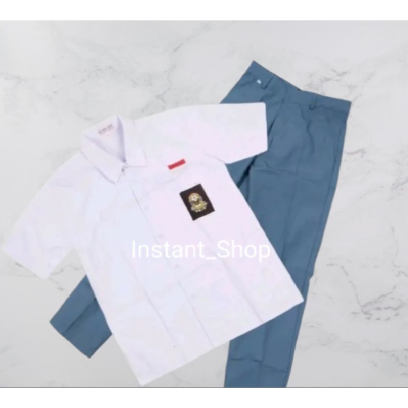 STELAN SMA BAJU PUTIH PENDEK CELANA PANJANG ABU ABU SERAGAM SEKOLAH