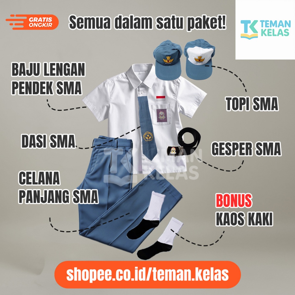 Setelan Seragam SMA Laki-laki Lengkap (Baju Pendek + Celana Panjang) - Bonus Kaos Kaki | Teman Kelas 9.9