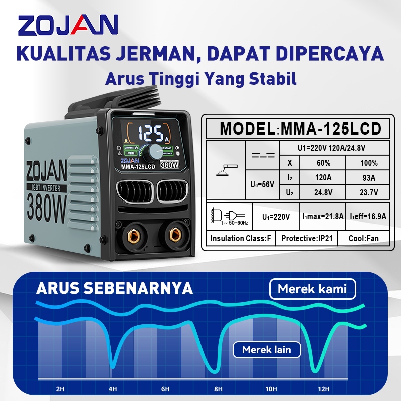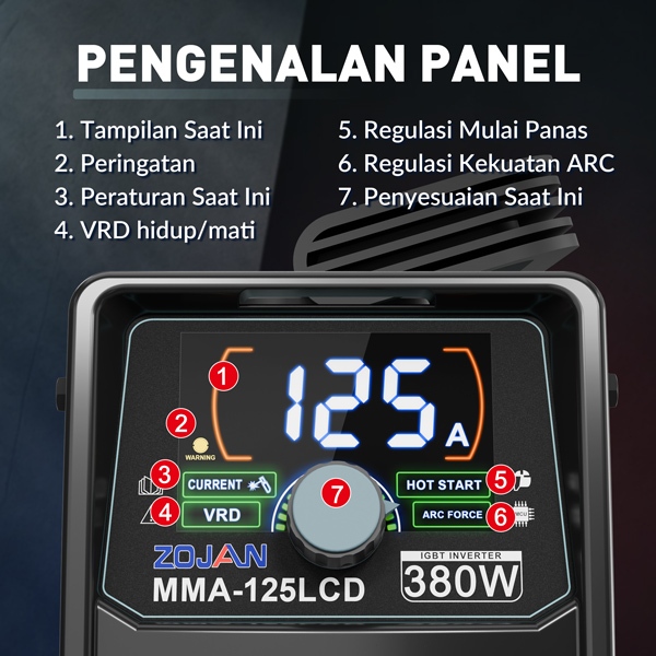 Mesin Las Cerdas Teknologi IGBT Mesin las listrik 380W Power Welding Tools Welder MMA-125LCD ZOJAN Gratis Ongkir