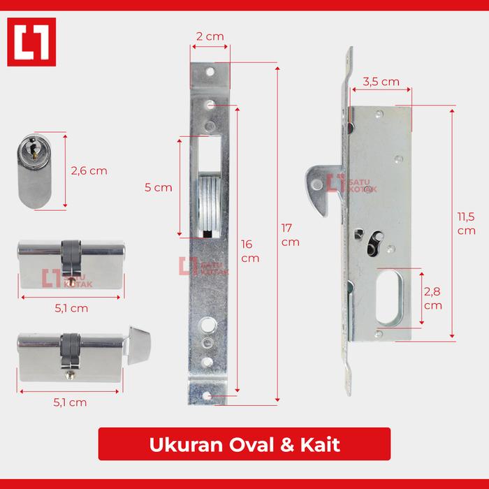 WELDOM Kunci Pintu Swing Sliding Aluminium 1 Set Kecil 5123/4123 - Kait Kunci