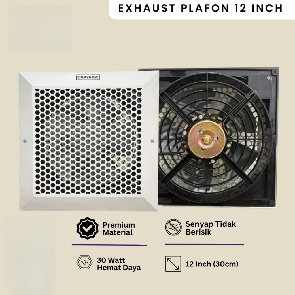 Okayama Exhaust Fan Plafon Kipas Hexos 12 Inch 10 Inch Hemat Daya Tidak Berisik