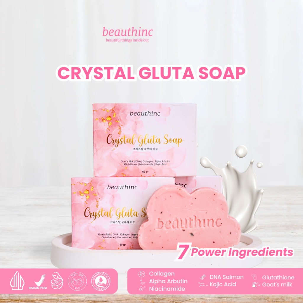 SABUN ANGGUR DOSTING BEAUTHINC 3% ALPHA ARBUTIN WITH 12% NIACINAMIDE GLOW SOAP BEAUTHINC DAN CRYSTAL GLUTA SOAP