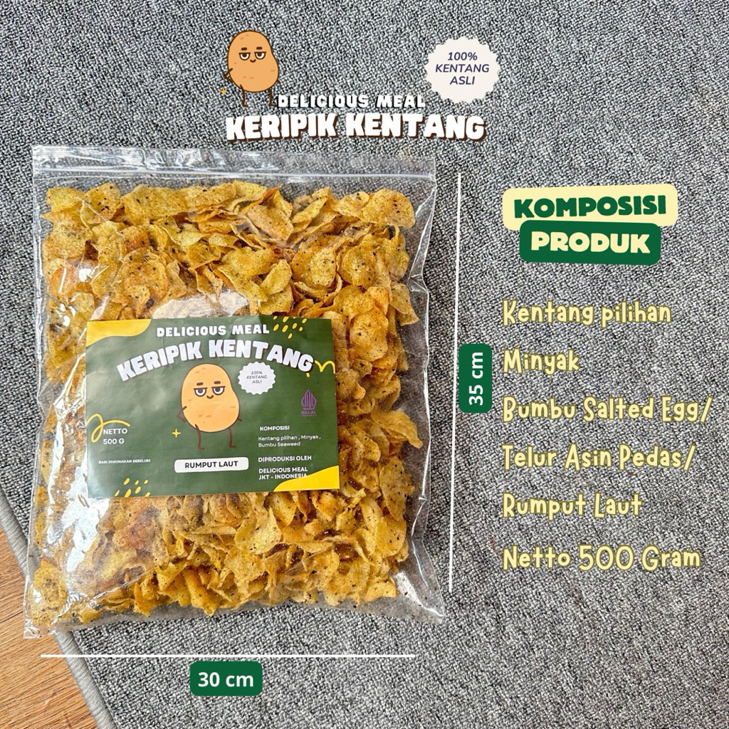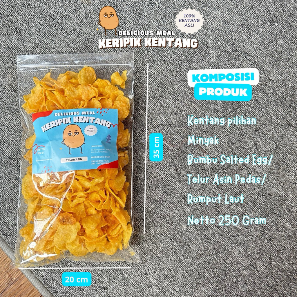 Keripik Kentang 100% Kentang Asli ukuran 250 & 500 Gram Delicious Meal