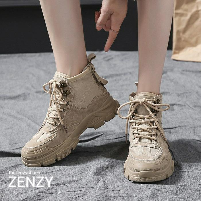 TZS ZENZY TIMO BOOTS KOREA DESIGN - SEPATU BOOTS WANITA - SEPATU BOOTS KOREA FASHON CEWEK CANVAS HIGH KARET SHOES - SIZE 35