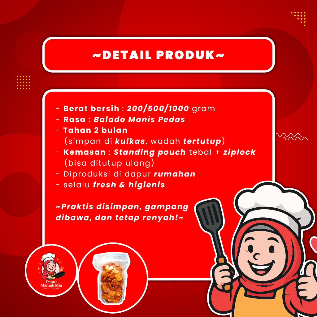 Keripik Kentang Balado Pedas Manis 500gr – Tipis & Renyah | Dapur Mamah Mia