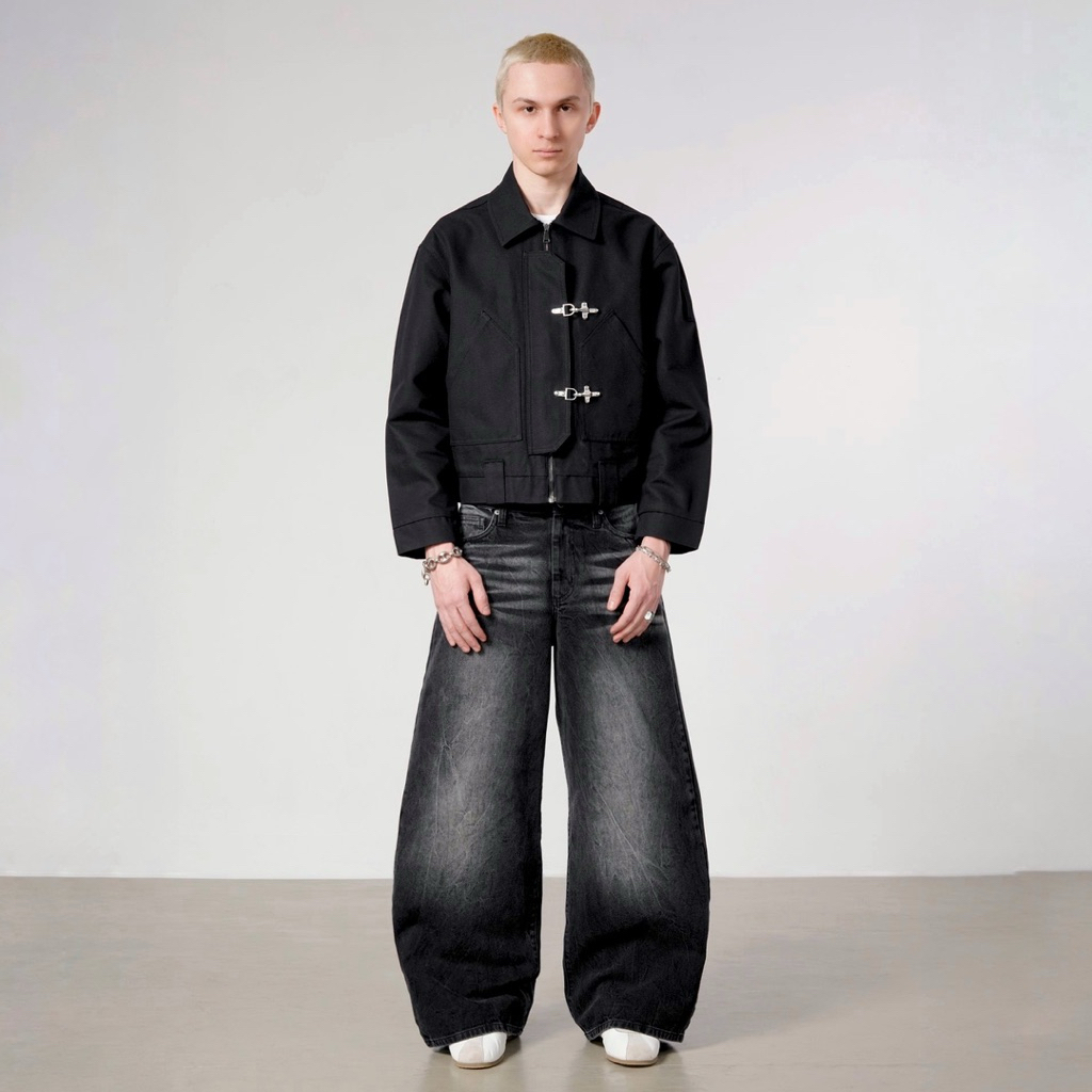 JAKET DENIM BOXY PRIA WANITA MODEL TERBARU SAI - FIREMAN CLASPS STYLE WORK OUTER JACKET