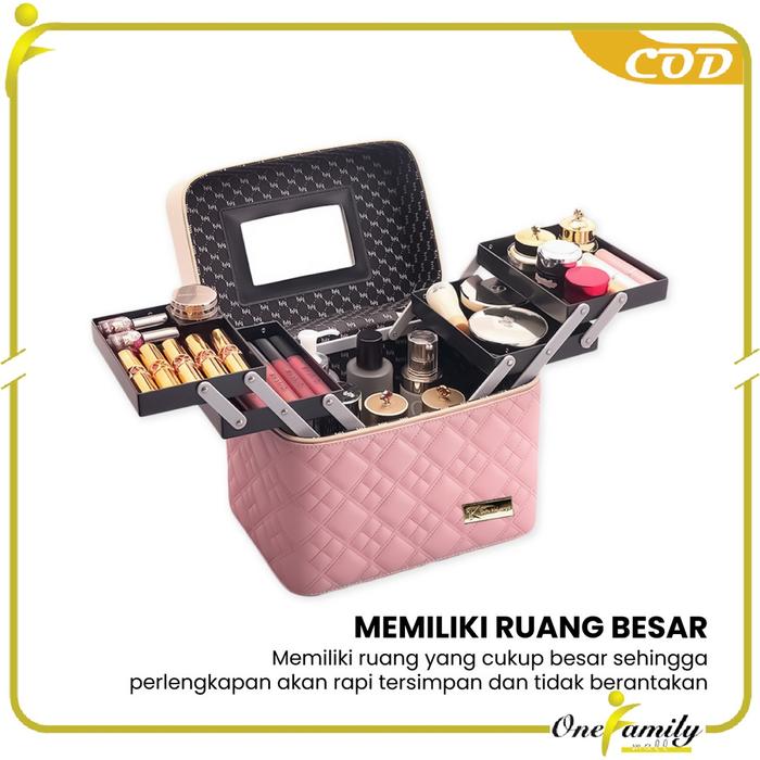 OFM K1 BOX KOSMETIK TEMPAT PENYIMPANAN MAKEUP MOTIF KETUPAT MAKE UP CASE WATERPROOF IMPORT - MERAH PINK, K1 KETUPAT