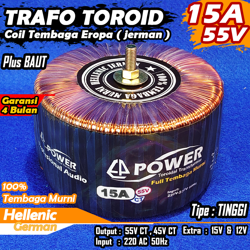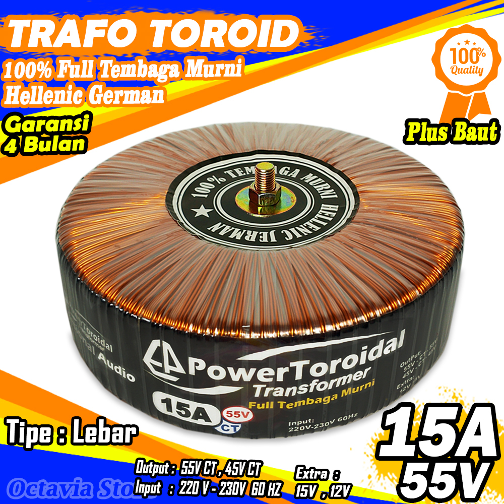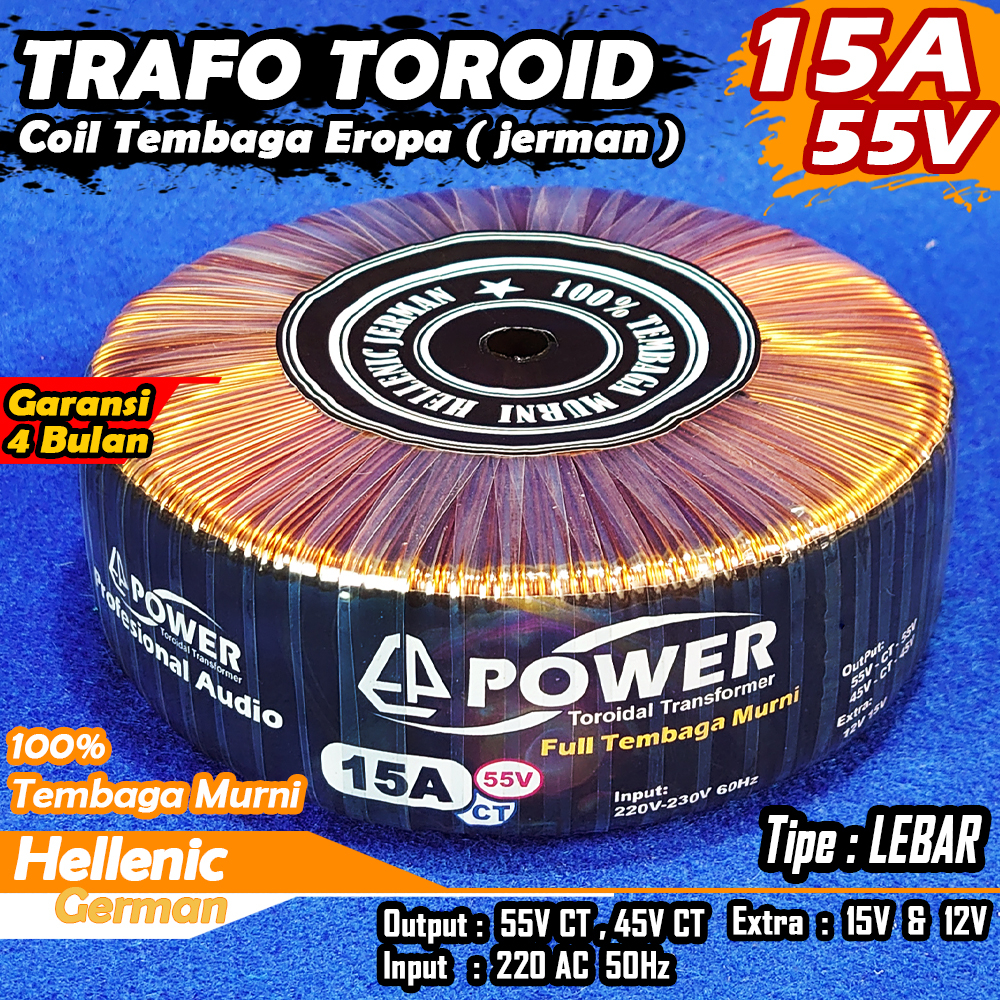Trafo Toroid 15A CT 55V 45V Full Tembaga MURNI Hellenic jerman Kualitas Premium