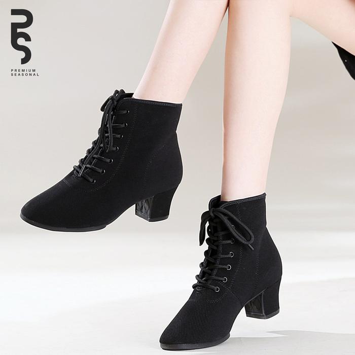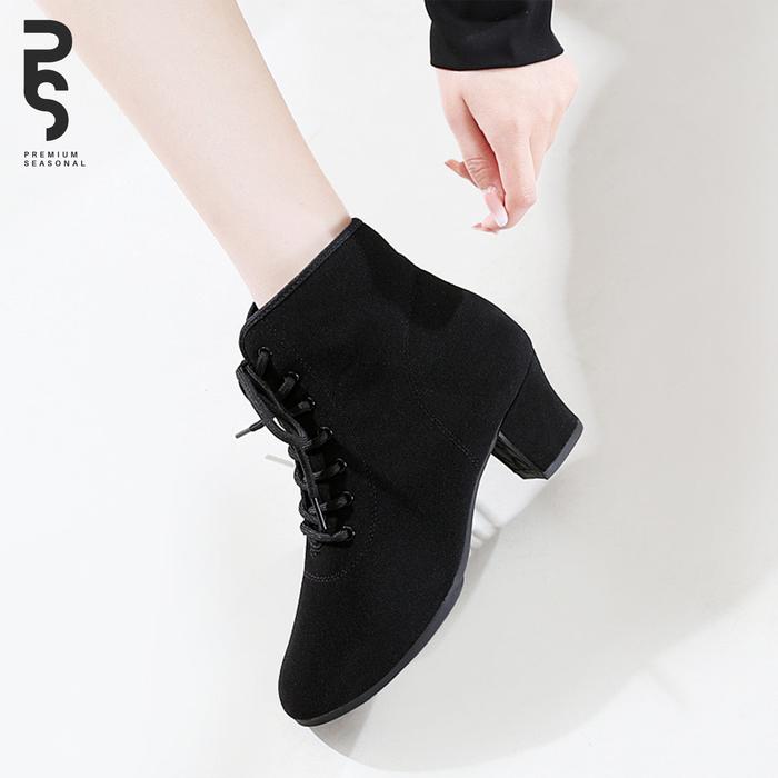 LESSY - SEPATU DANSA LATIN/ LINE DANCE HAK 5 CM SEMI BOOTS WOMAN WANITA - HITAM, 34